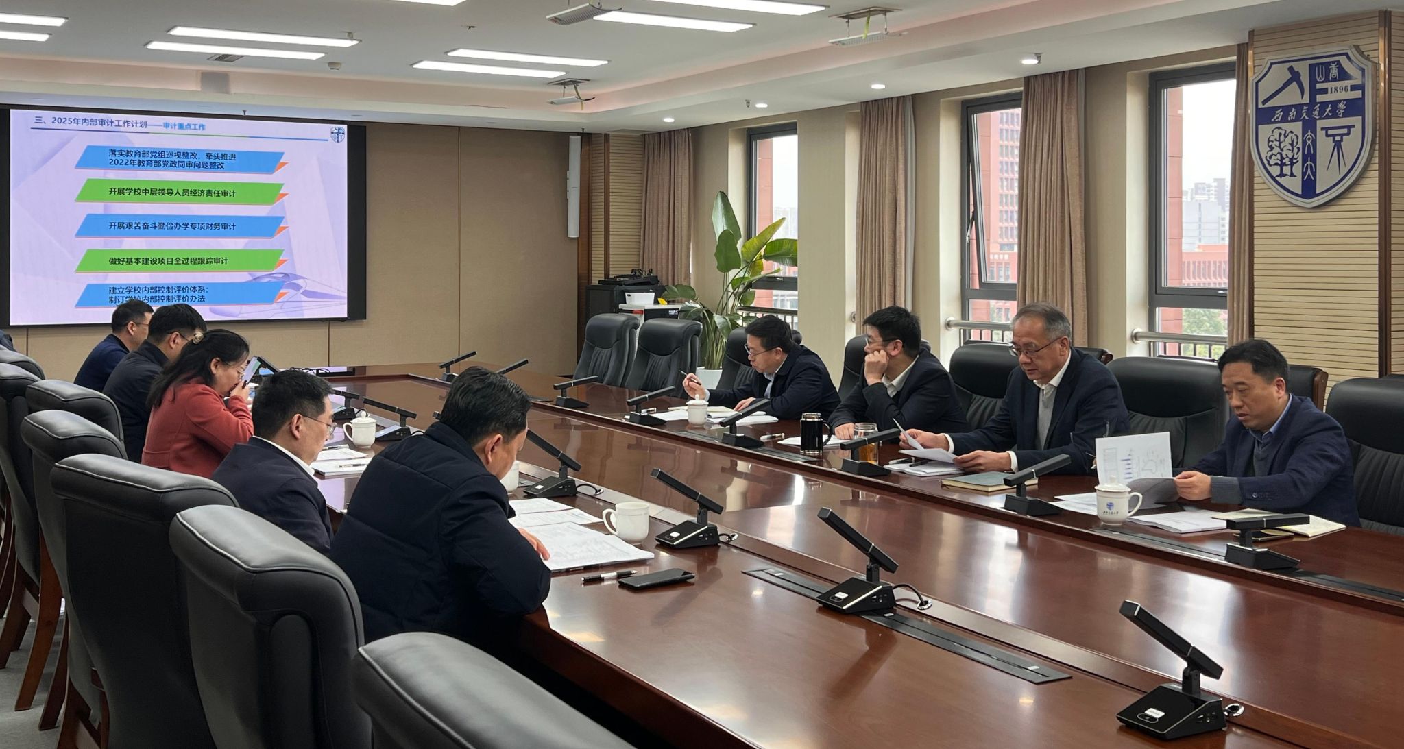 闫学东校长指出,审计工作是提升学校治理体系和治理能力现代化的重要抓手。他提出三点要求:一是强化自身能力建设,推动常规审计规范化、制度化;二是紧盯学校年度重点工作,确保问题整改落实到位;三是加强专项审计,形成监督合力,为学校重大决策和事业发展提供坚实保障。他强调,审计工作要“如臂使指、如影随形、如雷贯耳”,切实发挥风险防控和监督服务作用。